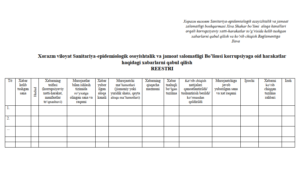 Korrupsiyaviy xatti-harakatlar to‘g‘risida kelib tushgan xabarlarni qabul qilish va ko‘rib chiqish REGLAMENTI